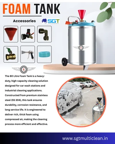 The Stainless Steel Foam Tank (80 L) is a high-capacity, corrosion-resistant pressure tank designed for foam-based cleaning applications. Made from high-grade stainless steel, it ensures durability, hygiene, and resistance to chemicals. Equipped with a pressure release valve, safety fittings, and hose connection, the tank is ideal for use in car washing, workshops, and industrial cleaning setups. Its 80-litre capacity allows extended operation without frequent refilling, ensuring efficiency and convenience.