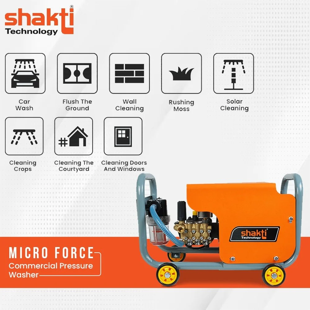 The Micro Force 2.5 HP High-Pressure Washer by Shakti Technology is a versatile and efficient cleaning tool ideal for both domestic and commercial use. Here are the key features: